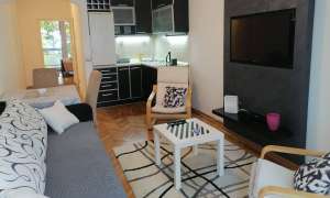 Апартамент Матея расположен на улице Проте Матее в районе Врачар. Рядом находятся Музей Николы Теслы, бульвар Короля Александра, площадь Славия и рынок Каленич, парламент Сербии… В двух комнатах могут разместиться до 4 человек, так как диван в гостиной раскладывается в двуспальную кровать. Кухня и ванная комната оборудованы всем необходимым. Также есть wi-fi, телевизор, утюг, фен, постель, полотенцы… Если вы на машине, вы можете забронировать место в гараже за дополнительную плату в размере 10 евро в сутки.