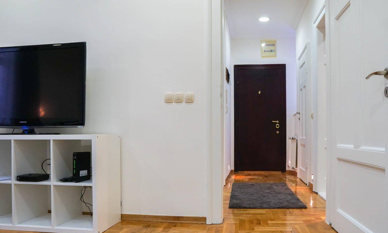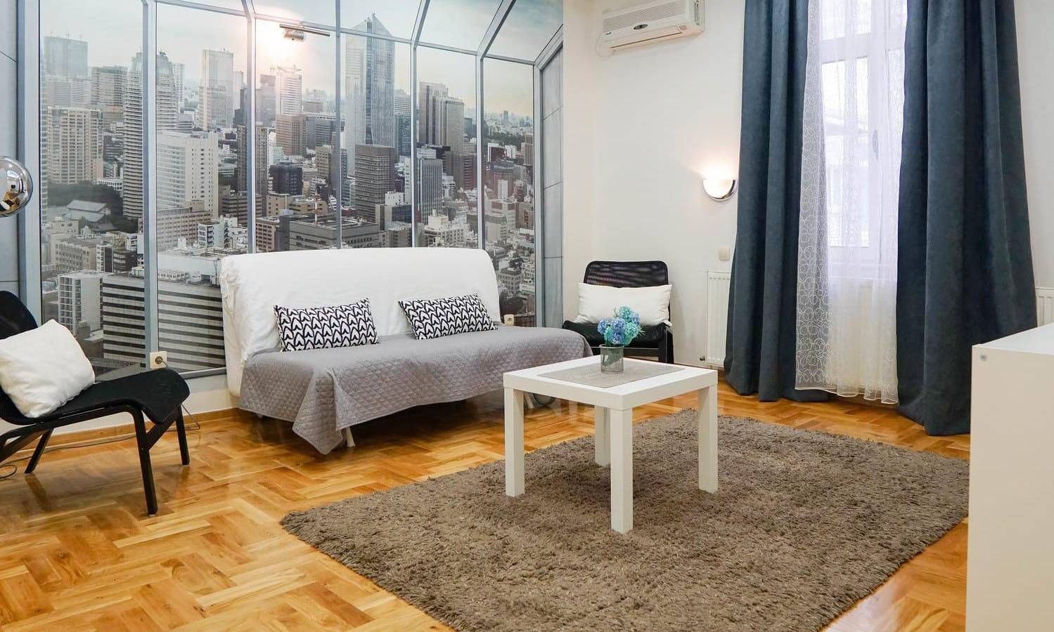 Апартаменты Хунтер 3 расположен на улице Негошева в районе Врачар, одной из самых известных улиц Белграда. Неподалеку апартамента Храм Св. Савва, рынок Калинич, множество кафе и ресторанов, а если вы доберетесь до улицы Князя Михаила, то сможете неспешно прогуляться и получить представлени об центре нашего города, при чем максимум за 15-20 минут. У апартамента Хунтер 3 есть собственное парковочное место, где ваш питомец будет в безопасности. Стоимость парковки составляет 10 евро в сутки. Эти двухкомнатный апартамент, который состоят из гостиной с раскладывающимся диваном, превращающимся в двуспальную кровать для двоих, отдельной спальни с двуспальной кроватью, кухни, ванной комнаты и террасы. Есть WI-FI, телевизор, постель, полотенцы фен, утюг, кондиционер…