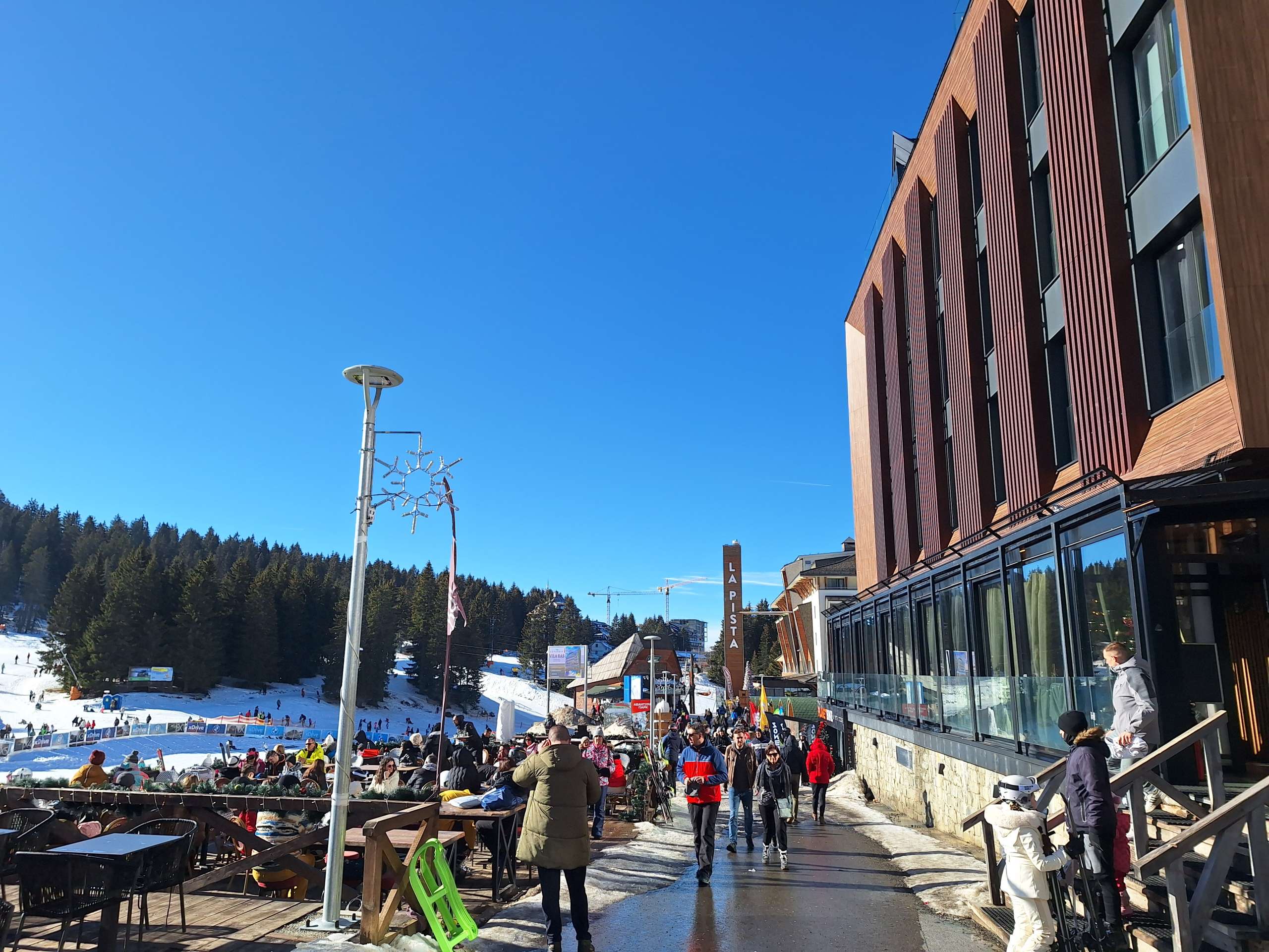 Для детей и всех остальных начинающих, делающих свои первые шаги в лыжном спорте, есть три огороженные зоны “лыжного детского сада” с движущимися дорожками, которые облегчают освоение базовых навыков катания на лыжах.