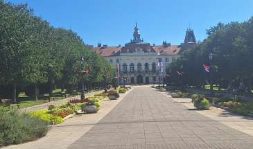 Пешеходная экскурсия по центру: ратуша, здание Жупанского управления с огромной картиной "Битва при Сенте" (картину не всегда можно увидеть, поскольку это зависит от того пустять ли нас администрация мэрии), пешеходная зона города с знаменитой улицы Короля Петра и собор Святого Георгия.